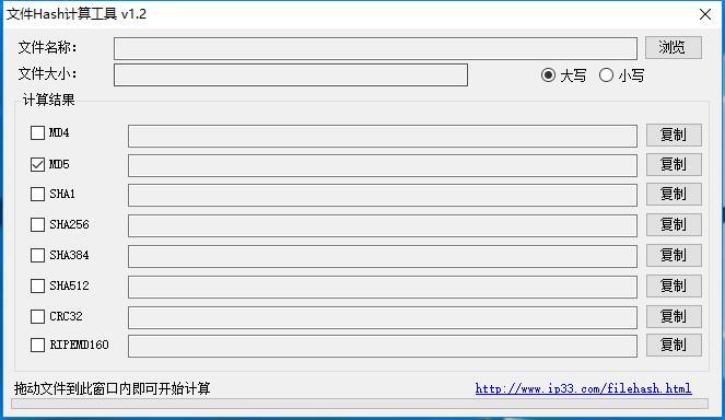 该工具由ip33.com开发,可以计算文件的 MD4、MD5、SHA1、SHA256、SHA384、SHA512、CRC32、RIPEMD160 等Hash。该工具完全免费使用并可以自由传播,但对软件破解反编译等是不被允许的。